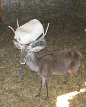 Además, en este caso, el ciervo no se encontraba en buenas condiciones desde el punto de vista del bienestar animal, ya que llevaba cuerdas enredadas y un bidón de plástico clavado en los cuernos.